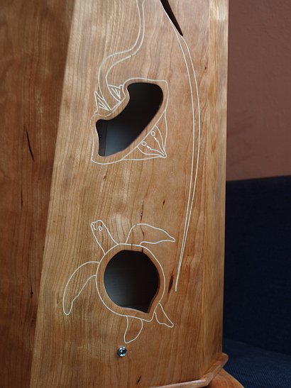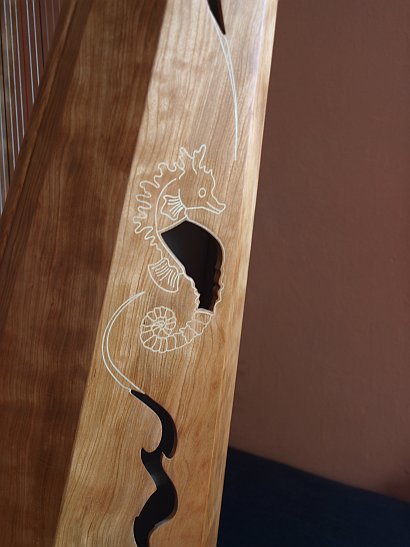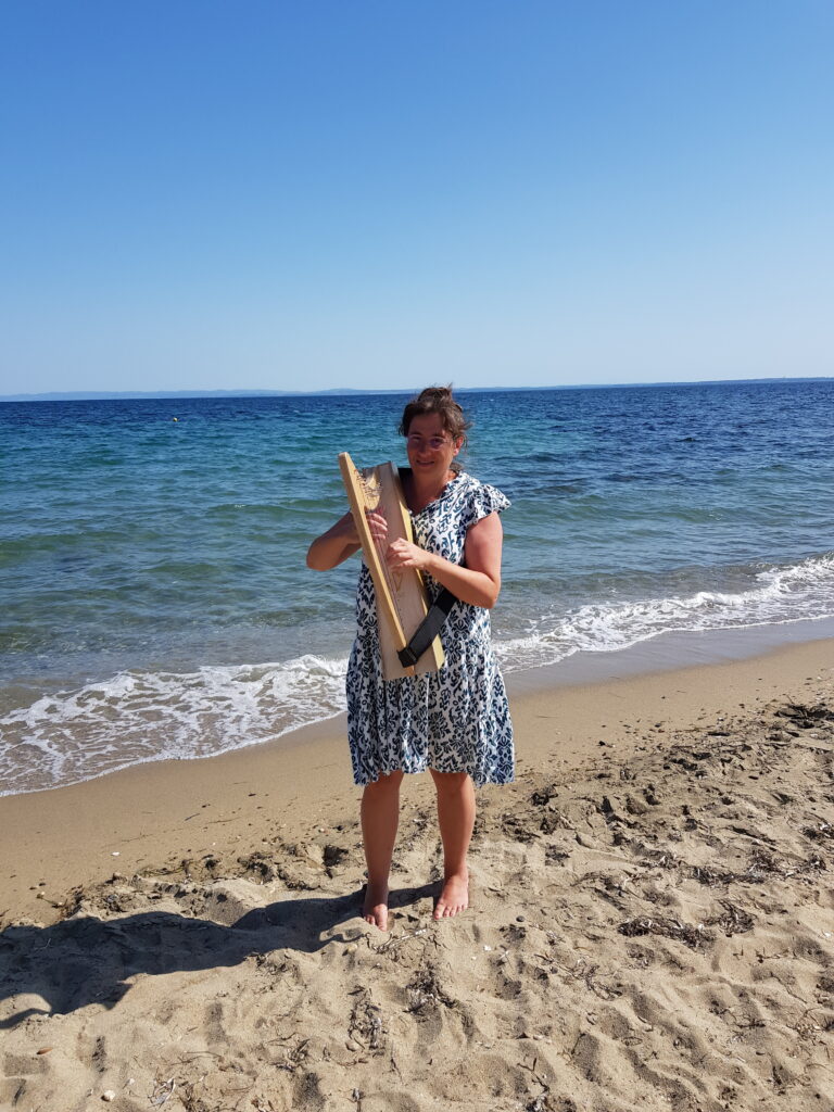 Mein Hauptinstrumenst ist meine „Meeresharfe„. Sie hat 36 Saiten (Carbon) und wurde nach unseren gemeinsamen Entwürfen von Klaus Regelsberger (Artefakt Instrumentenbau) gebaut: