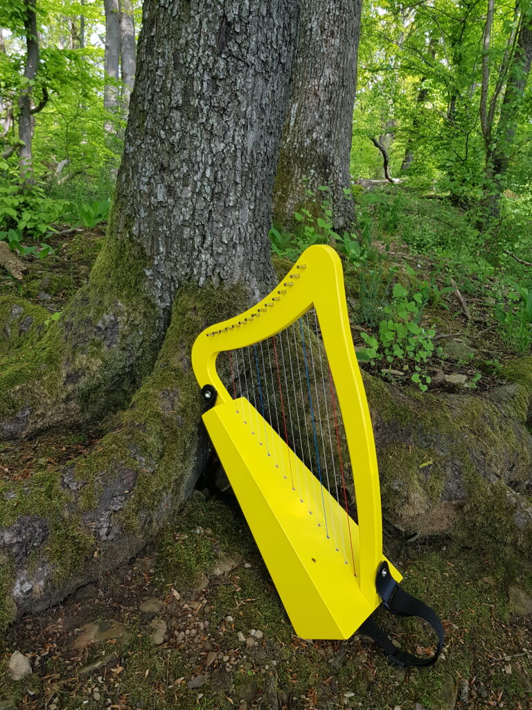 Zwei Miniharfen mit 15 bzw. 16 Saiten begleiten mich auf Urlauben, Ausflügen und Radtouren: